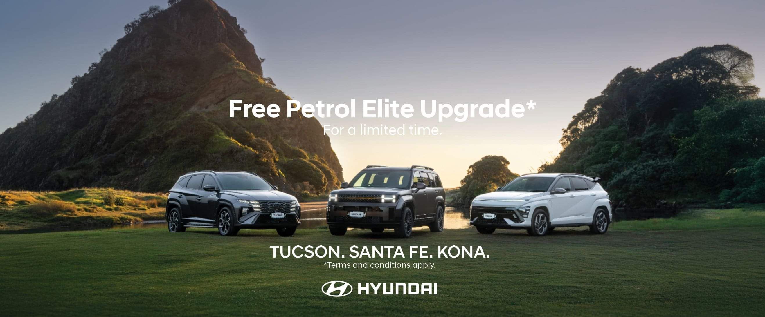 Upgrade your drive this month with our Free Petrol Elite Upgrade offer across selected Hyundai SUVs. For a limited time, when you purchase a Petrol Active model in the Hyundai Kona, Hyundai Tucson Series II, or Hyundai Santa Fe range, we’ll move you up to the Petrol Elite model at no additional cost*.
