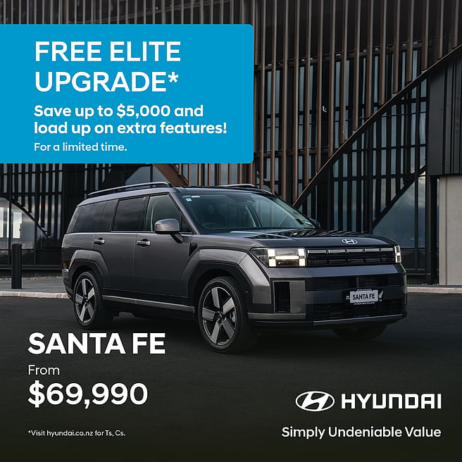 SANTA FE: Buy a SANTA FE 2.5L Petrol Active for $69,990 between 1 Feb – 31 March 2026 and we’ll upgrade you to a SANTA FE 2.5L Petrol Elite at no extra cost. Limited time only. Not available in conjunction with any other offer. On‑road costs not included.