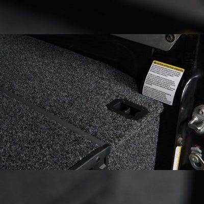 The vehicle-specific side panel kit fills the area between the outer edge of the box and the side of the vehicle. The side panel completes the panel and provides a larger flat top surface while maintaining access to the wheel arch storage areas.